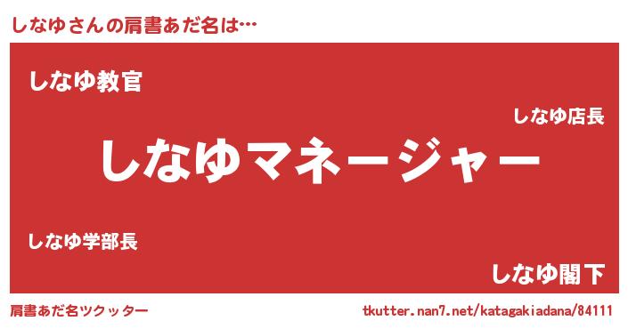 | ヘコむあだ名 | 『しなにー』『しなゆ(小並感)』 |