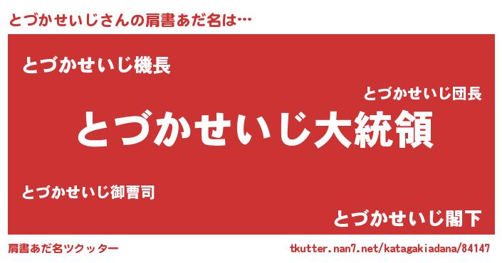 | 意味不明あだ名 | 『とづかせいじフォーエバー』 |