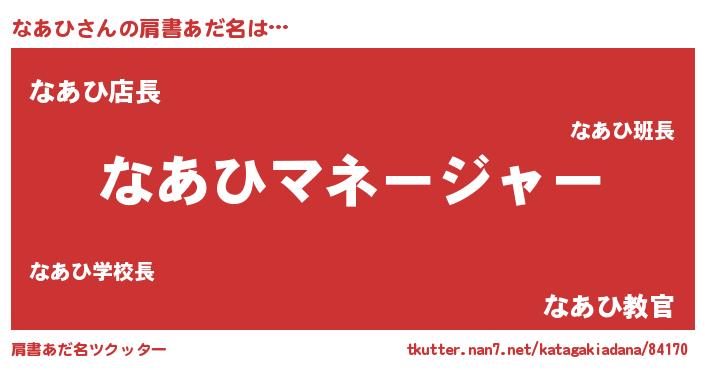 | 欧米人風あだ名 | 『アンジェラ・なあひ』『マイケルなあひ』 |