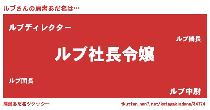 | ポケモン風あだ名 | 『ルブチュウ』『ルブゴンZ』『ヒルブ』 |