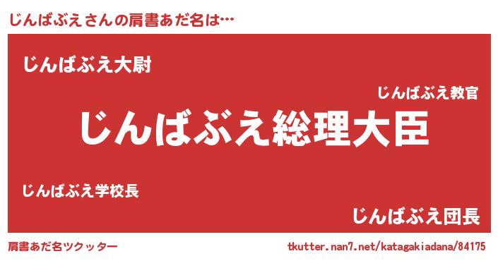 | 男性向けラノベタイトル風あだ名 | 『やはりじんばぶえの青春ラブコメはまちがっている 』 |
