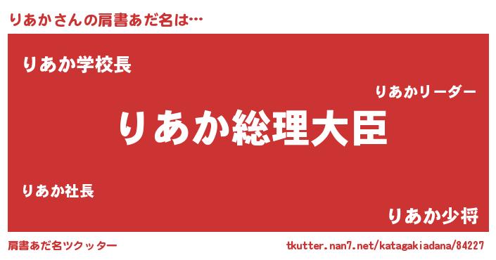 | 女子向けラノベタイトル風あだ名 | 『りあかの雑貨屋さん』『りあか恋絵巻』 |