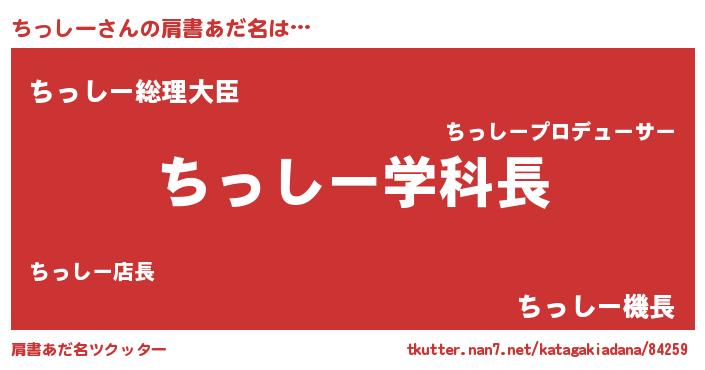 | ヒーロー風カッコイイあだ名 | 『慈愛の使者ちっしー』『黄金騎士チッ』 |