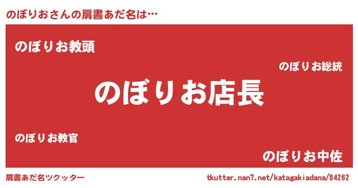 | 男性向けラノベタイトル風あだ名 | 『のぼりおの憂鬱』『ノボリオスレイヤー』 |