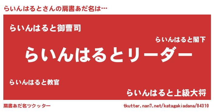 | 男性向けラノベタイトル風あだ名 | 『らいんはるとの嫁は女の子じゃないと思った?』 |