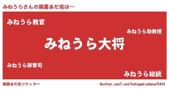 | 男性向けラノベタイトル風あだ名 | 『転生したらみねうらだった件』 |