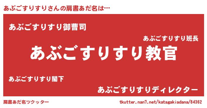 | 意味不明あだ名 | 『住所不定無職あぶごすりすり(86歳)』 |