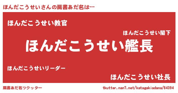 | 欧米人風あだ名 | 『ほんだこうせい・ステッグマイヤー』 |