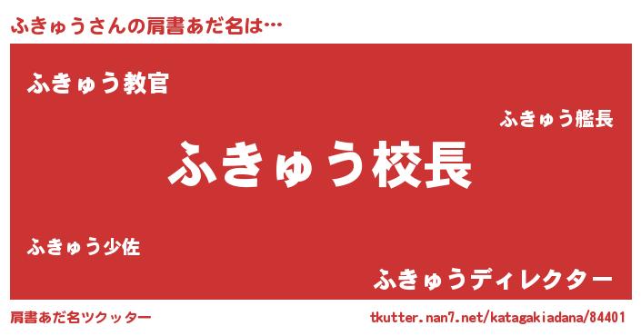 | 胡散臭い通販商品みたいなあだ名 | 『絶対に幸福をもたらす健康食品…その名も「ふきゅう」』 |