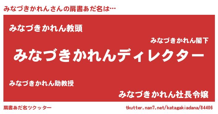 | 恥ずかしいあだ名 | 『みなちん』『プリティーみなづきかれん』 |