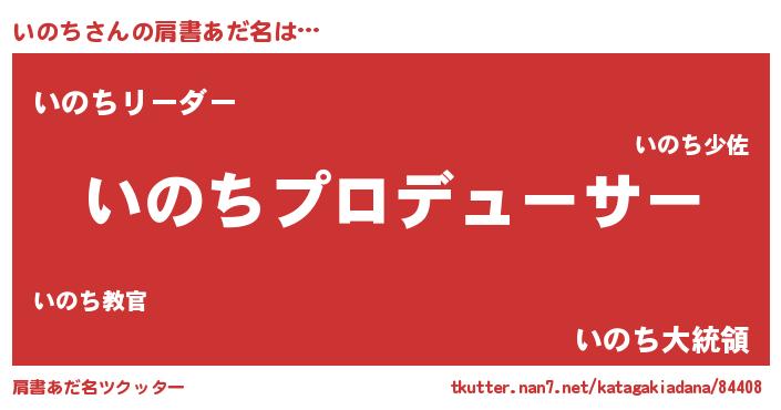 | ヒーロー風カッコイイあだ名 | 『幻影騎士イノ』『ウルトラいのちマン』 |