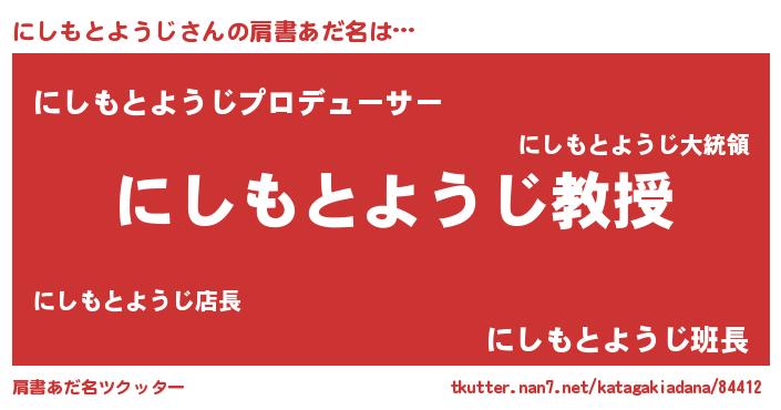 | 男性向けラノベタイトル風あだ名 | 『おまえをオタクにしてやるから、俺をにしもとようじにしてくれ! 』 |