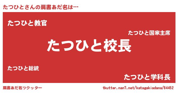 | ヒーロー風カッコイイあだ名 | 『ネオタツヒト』『仮面タツダー』 |