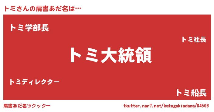| 女子向けラノベタイトル風あだ名 | 『トミの雑貨屋さん』『死神トミの再婚』 |