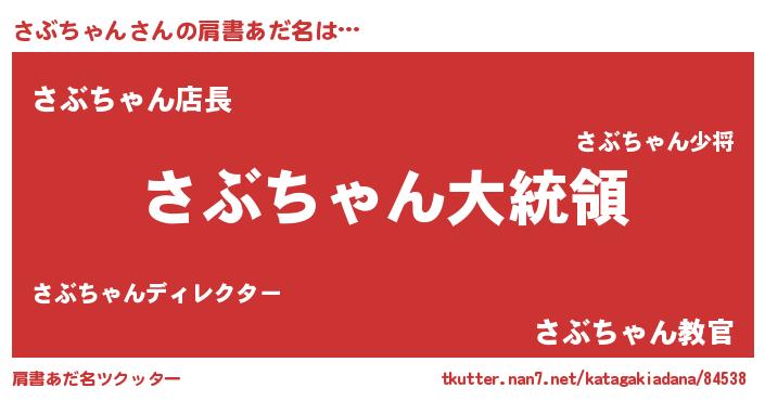 | 女子向けラノベタイトル風あだ名 | 『さぶちゃんの雑貨屋さん』 |
