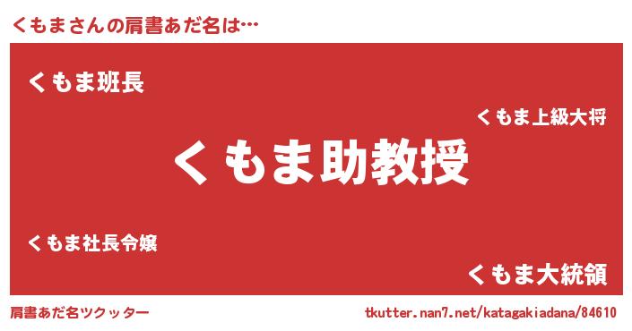 | ヘコむあだ名 | 『くも太郎』『つくし』『くもにゅー』 |