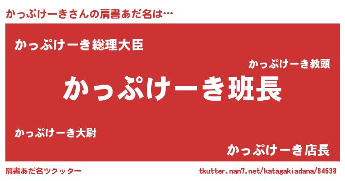 | 男性向けラノベタイトル風あだ名 | 『かっぷけーきの嫁は女の子じゃないと思った?』 |