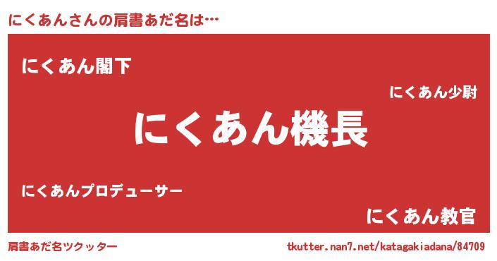 | ヘコむあだ名 | 『にくあん(苦笑)』『にく太郎』 |