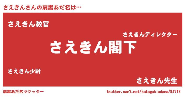 | 意味不明あだ名 | 『自称さえきん』『永久保存さえきん』 |