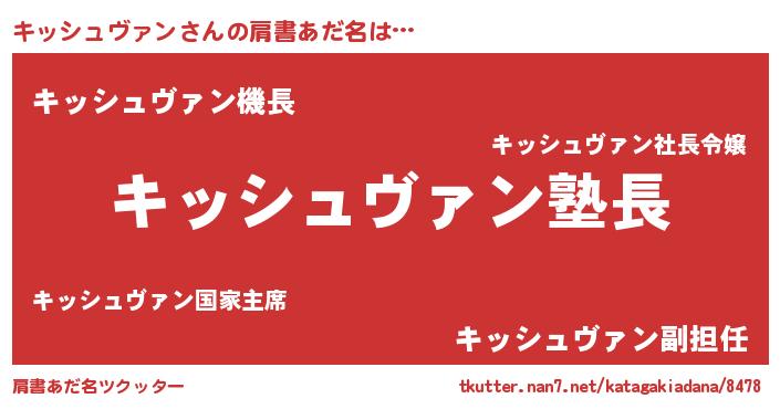 | 女子向けラノベタイトル風あだ名 | 『キッシュヴァンは平凡を望む』 |