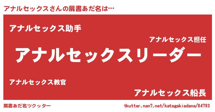 | 意味不明あだ名 | 『とにかく怪しいアナルセックス』 |
