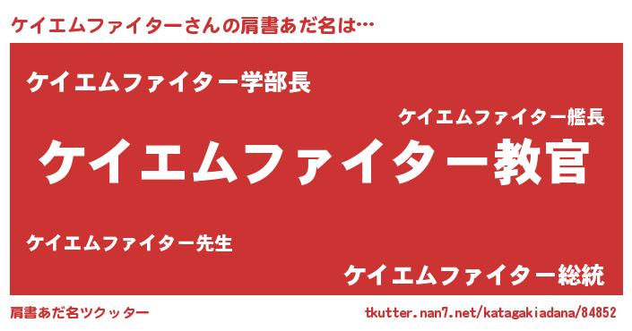 | 男性向けラノベタイトル風あだ名 | 『この素晴らしい世界にケイエムファイターを!』 |