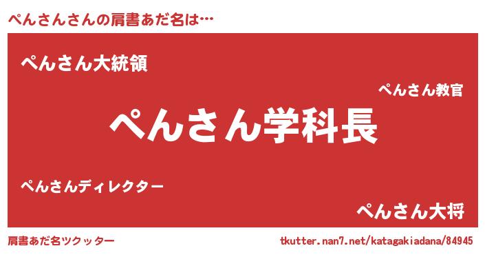 | 男性向けラノベタイトル風あだ名 | 『おまえをオタクにしてやるから、俺をぺんさんにしてくれ! 』 |