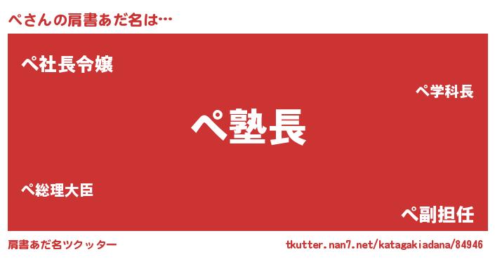 | 女子向けラノベタイトル風あだ名 | 『ぺ様がみてる』『ぺ姫と円卓の騎士』 |
