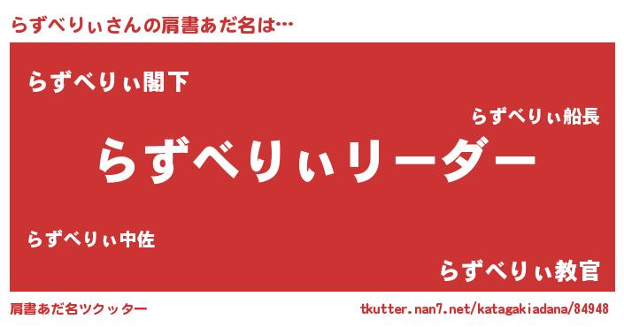 | 意味不明あだ名 | 『とにかく怪しいらずべりぃ』 |