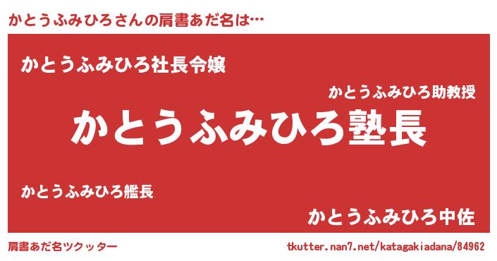 | 男性向けラノベタイトル風あだ名 | 『かとうふみひろの嫁は女の子じゃないと思った?』 |