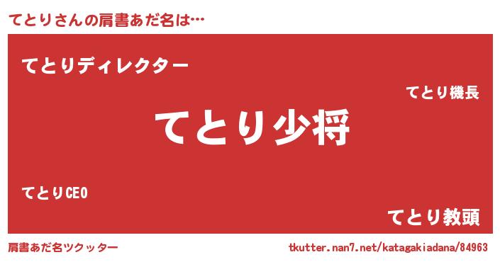 | ヘコむあだ名 | 『てとり(苦笑)』『てとにゅー』 |
