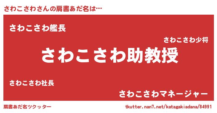 | ヒーロー風カッコイイあだ名 | 『正義の使者さわこさわ』『銀牙騎士サワ』 |