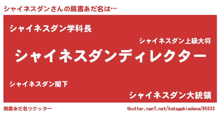 | 男性向けラノベタイトル風あだ名 | 『シャイネスダンに滅ぼされるだけの簡単なお仕事です』 |