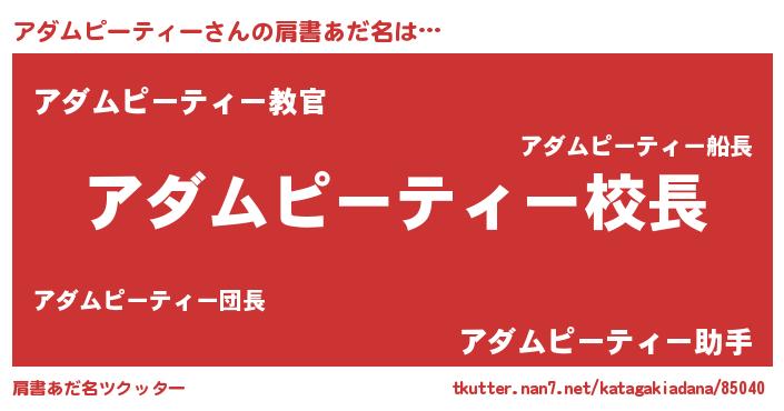 | 男性向けラノベタイトル風あだ名 | 『アダムピーティーという概念が存在しない退屈な世界 』 |