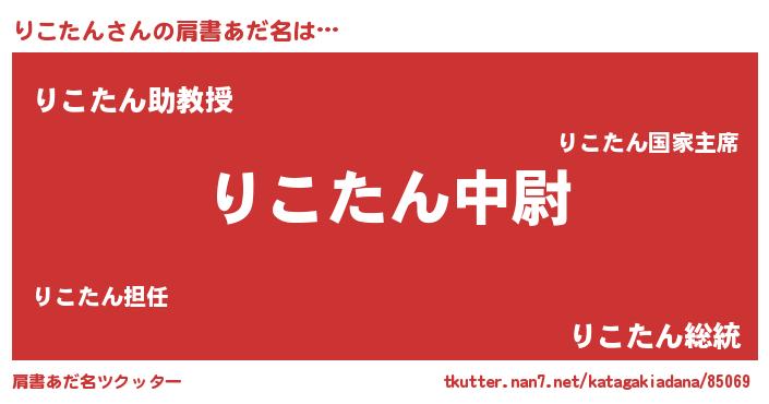| 男性向けラノベタイトル風あだ名 | 『りこたん~年齢イコール彼女いない歴の魔法使い~』 |