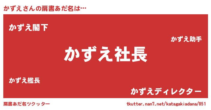 | 男性向けラノベタイトル風あだ名 | 『かずえの憂鬱』『はたらくかずえさま!』 |