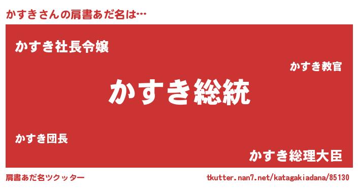 | 男性向けラノベタイトル風あだ名 | 『Re:かすきから始める異世界生活』 |