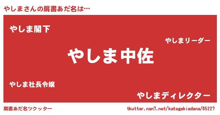 | 男性向けラノベタイトル風あだ名 | 『転生したらやしまだった件』 |