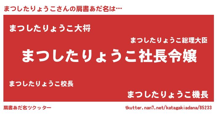 | 女子向けラノベタイトル風あだ名 | 『誰かこのまつしたりょうこを説明してください! ~契約から始まるウェディング~』 |