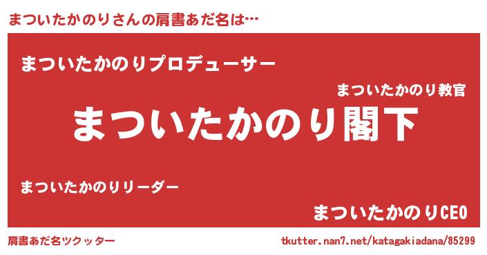 | 男性向けラノベタイトル風あだ名 | 『Re:まついたかのりから始める異世界生活』 |