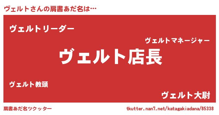 | ヒーロー風カッコイイあだ名 | 『スーパーヴェルト』『幻影騎士ヴェ』 |