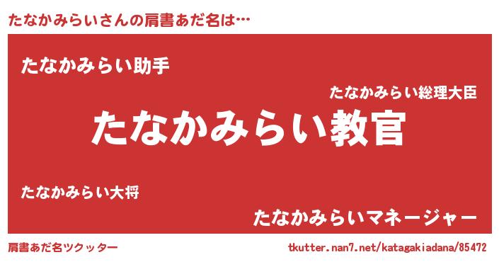 | 女子向けラノベタイトル風あだ名 | 『悪役たなかみらいに転生したようですが、知った事ではありません』 |