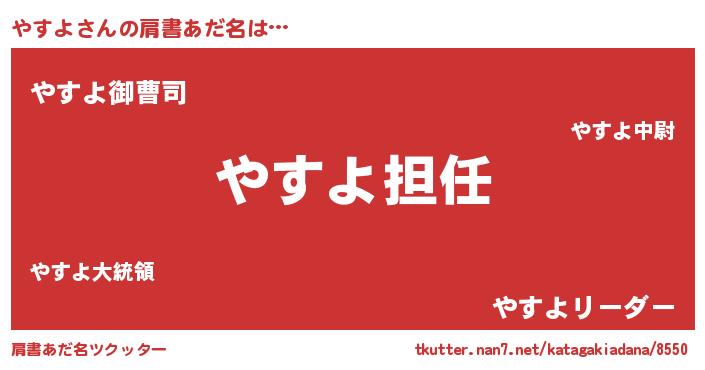 | ヘコむあだ名 | 『やすよ(震え声)』『やすっふぃ~』 |