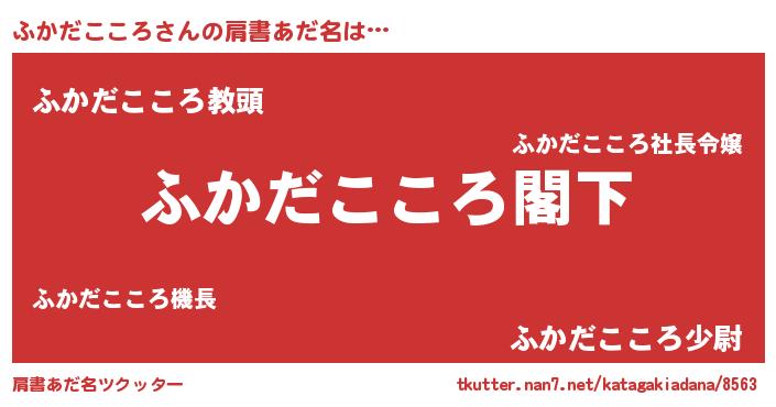 | 意味不明あだ名 | 『自称ふかだこころ』 |