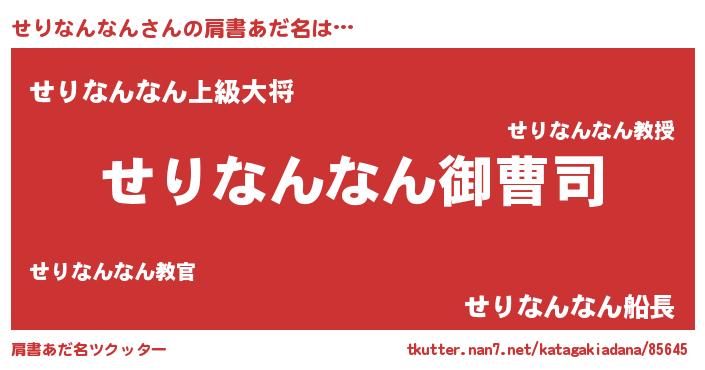 | 男性向けラノベタイトル風あだ名 | 『せりなんなんの憂鬱』 |