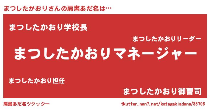 | 男性向けラノベタイトル風あだ名 | 『まつしたかおりに滅ぼされるだけの簡単なお仕事です』 |