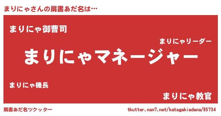 | 男性向けラノベタイトル風あだ名 | 『まりにゃに滅ぼされるだけの簡単なお仕事です』 |