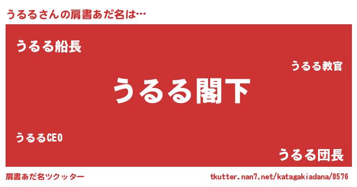 | 女子向けラノベタイトル風あだ名 | 『うるるストレイドッグス』 |