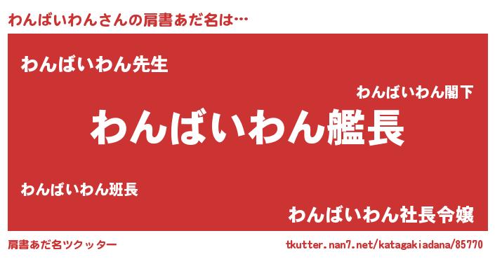 | 男性向けラノベタイトル風あだ名 | 『うちのわんばいわんが世界を掌握している!』 |