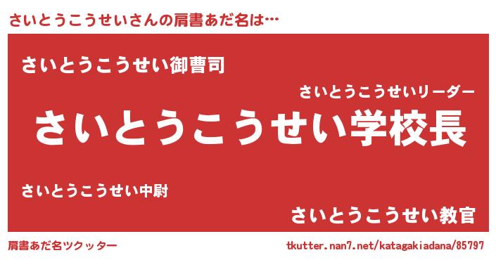 | 男性向けラノベタイトル風あだ名 | 『ノーゲーム・ノーサイトウコウセイ』 |